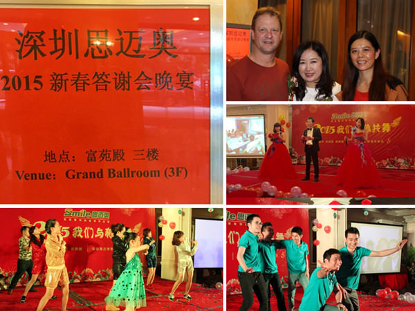 新浪記者李欣:思邁奧這次年會于往屆和其他同類年會相比,無論是在參加答謝會的人數(shù),還是節(jié)目數(shù)量,還是節(jié)目品質(zhì),都有所提升。此次年會參加年會的人數(shù)達(dá)到 一百五十多人,節(jié)目也豐富精彩。據(jù)悉,本屆年會的節(jié)目有十五個,鐘經(jīng)理總導(dǎo)。思邁奧人員自編自排,節(jié)目既有:歡快《歡樂中國年》、流行的舞蹈《小蘋果》、 搞笑的小品《免費(fèi)電話》《相親》、滑稽的雙簧《打電話》、青春的舞蹈《倍兒爽 》、激情的舞蹈《抓錢舞》、更有動聽的歌聲《突然的自我》《紅日》《far away from home》《紅塵情歌》《恭喜發(fā)財》《飄揚(yáng)過海來看你》、爵士健美操《跟我動起來》、全體員工《T臺秀》、手語《感恩的心》等節(jié)目。此次皇冠酒店高人氣年會,思邁奧回答了觀眾提問的幾個問題,為什么選擇iphone6 plus作為公司的一等獎,iphone6 作為公司的二等獎。思邁奧解釋道。因思邁奧是蘋果供應(yīng)鏈生產(chǎn)廠家的安檢產(chǎn)品指定供應(yīng)商,為了感謝客戶,所以我們選擇蘋果手機(jī)作為我們公司的獎品。