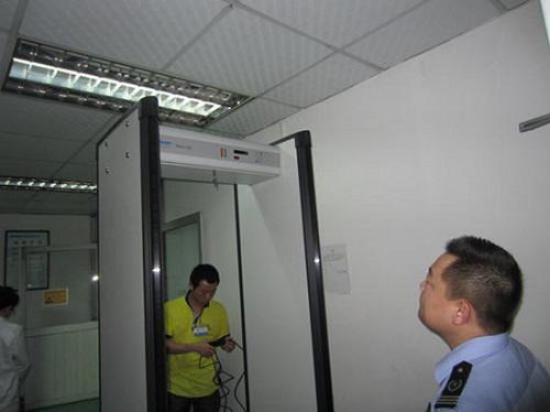 思邁奧工程師在富士康安裝Rapiscan METOR6S金屬探測安檢門現(xiàn)場圖: